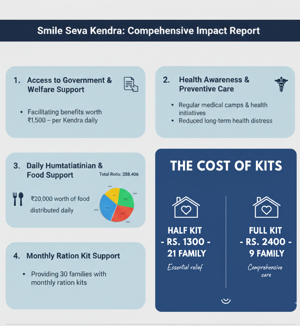 Smile Seva Kendras act as a bridge between communities, government bodies, and NGOs, ensuring programs and schemes reach the most deserving beneficiaries efficiently and transparently.